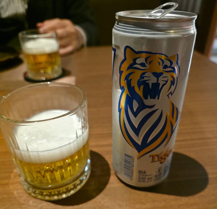 まずは,ベトナムでお馴染みのタイガービールで乾杯。ベトナムではビールに氷を入れて飲むのが普通で,氷をもってきたが,使わずにグビっと。体に染み渡る。